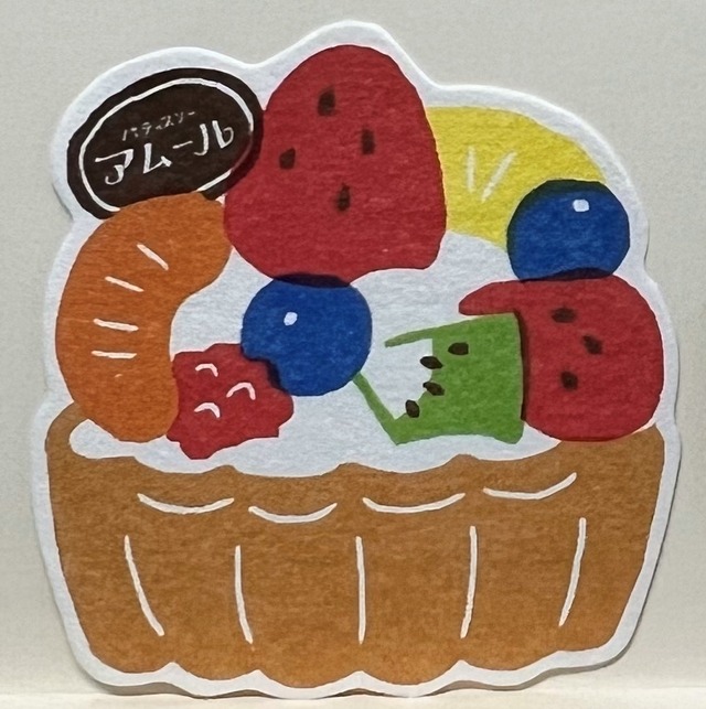 パティスリーアムールのレトロシリーズから、色とりどりのフルーツがのったフルーツタルトをモチーフにしたミニ便箋が登場。 いちご、キウイ、ブルーベリー、オレンジなど、懐かしくておいしそうな雰囲気たっぷりのイラスト。 紙もの好き・レトロスイーツ好きにはたまらない、手のひらサイズの癒し系アイテムです。 裏面には罫線入り。ちょっとしたメッセージやプレゼントへの一言添えにぴったりです。 ※本商品はメーカー販売終了となっており、入手困難なプレミアアイテムです。 ・商品内容:ミニ便箋1枚のみ(封筒なし) ・サイズ:約 縦 69 mm × 横 65 mm ・製造元:古川紙工株式会社(日本製) ───── This adorable mini letter features a retro-style fruit tart design from the Pâtisserie Amour series by Furukawa Paper Works. Topped with colorful fruits such as strawberries, kiwis, oranges, and blueberries, the illustration creates a nostalgic and sweet atmosphere. Perfect for short messages, letter inserts, or thoughtful notes to accompany a small gift. The back is lined for easy writing. This item has been discontinued by the manufacturer and is now a hard-to-find premium collectible. - Size: Approx. 69 × 65 mm - ncludes: Flat sheet only (no envelope) - Made in Japan by Furukawa Paper Works
