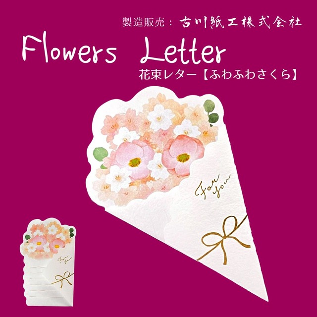 ギフトに添えるのにぴったりな「花束レター」。 淡いピンクとホワイトの花々が描かれた便箋を折りたたむと、花束のような形に早変わりします。感謝の気持ちやお祝いの言葉を包み込み、華やかに伝えることができます。 ※本商品はメーカー販売終了となっており、入手困難なプレミアアイテムです。 ●商品内容:ダイカット便箋 1枚 ●製造販売元:古川紙工株式会社 ●サイズ:H128 × W125 mm(開いた状態) ●素材:和紙 ●日本製 The Flowers Letter is perfect for adding a heartfelt note to your gift. When folded, the die-cut letter transforms into a beautiful bouquet design in soft pink and white flowers — a charming way to present messages of gratitude or congratulations. This product has been discontinued by the manufacturer and is now a rare collectible. ●Contents: 1 die-cut letter sheet ●Manufacturer: Furukawa Paper Works Co., Ltd. ●Size: H128 × W125 mm (opened) ●Material: Japanese paper (washi) ●Made in Japan