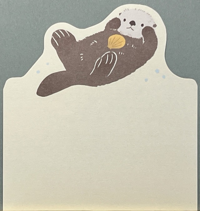 ぷかぷか浮かぶラッコがそのままメモ帳に! 「ZOOM IN ANIMALS(ズームインアニマル)」シリーズから登場した、ラッコ型のダイカットメモです。 貝をかかえる姿が愛らしく、やさしい色合いとふんわり丸みのあるフォルムが魅力。 見ているだけでも癒される、ほっとする一枚です。“やさしい視点”が、紙ものに込められています。 ・商品内容:2柄各1枚(計2枚)での販売。 ・サイズ:約縦14cm × 横11cm(ラッコの形状で変型)/実用部分:縦約10cm ・シリーズ:ZOOM IN ANIMALS(ズームインアニマル) ・販売元:株式会社エヌビー社 A floating sea otter on a memo pad! This sea otter-shaped die-cut memo pad is from the “ZOOM IN ANIMALS” series. The sea otter’s adorable pose holding a shell, gentle colors, and soft, rounded shape are charming. Just looking at it is soothing and relaxing. A “gentle perspective” is incorporated into this paper product. - Product Details: Sold as a set of two pieces (one of each design). - ^Size: Approximately 14cm (H) × 11cm (W) (varies depending on the shape of the sea otter) / Practical portion: Approximately 10cm (H) - Series: ZOOM IN ANIMALS - Distributor: N.B. Co., Ltd.