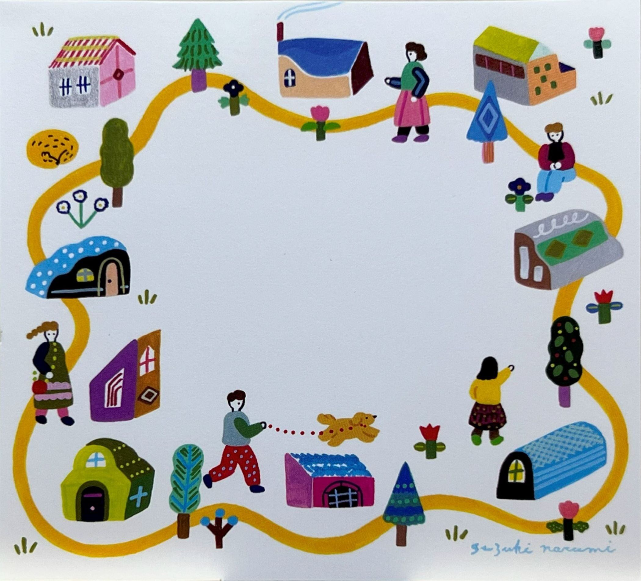 This colorful block memo illustrated by Narumi Suzuki captures a lively “City Life” filled with charming homes, people, and animals.