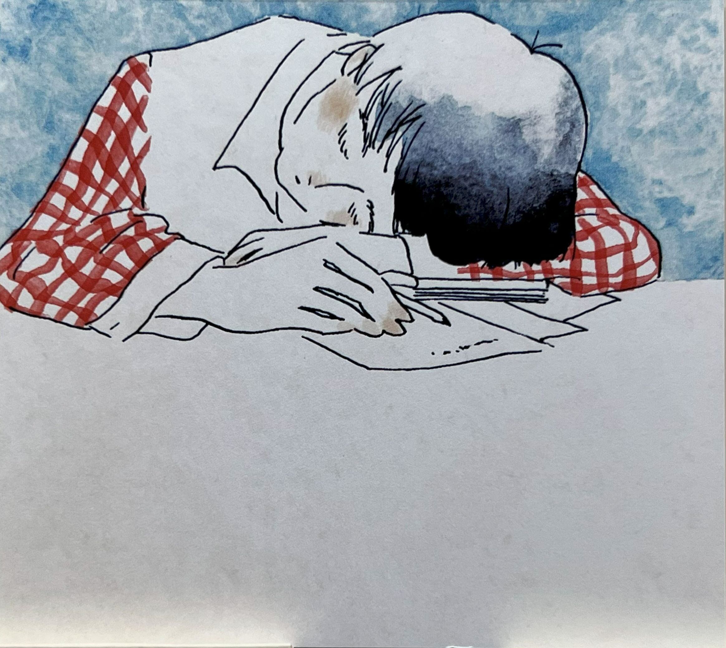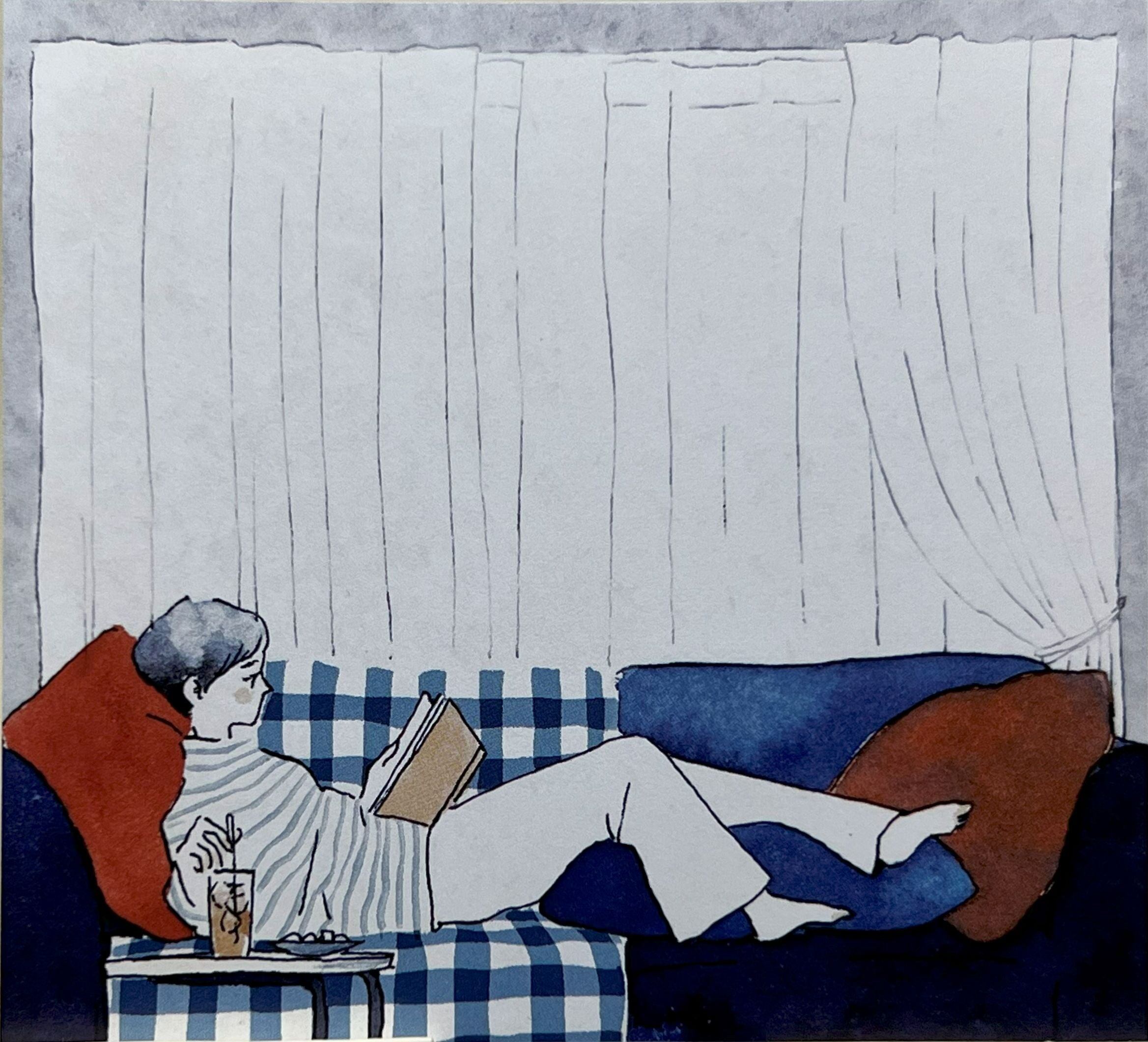 This illustrated memo card by Sayuri Fujimaki shows a calm, relaxing moment with a mug in hand.