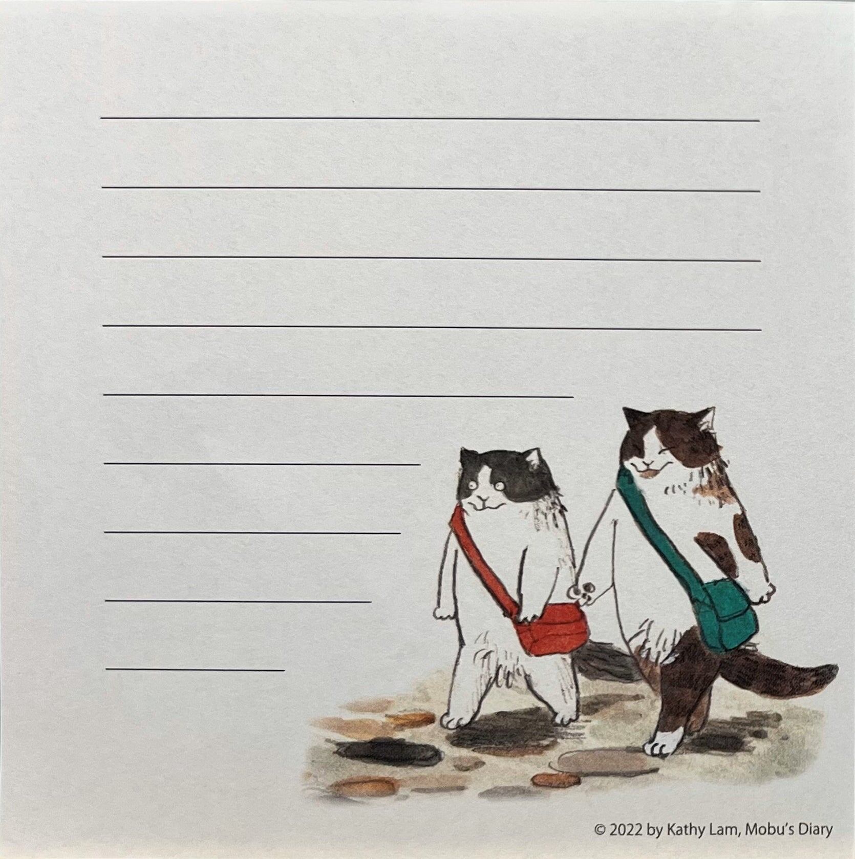 From the quirky and lovable world of Mobu’s Diary, this memo pad features two working cats heading out with shoulder bags, trying to earn their daily canned food.