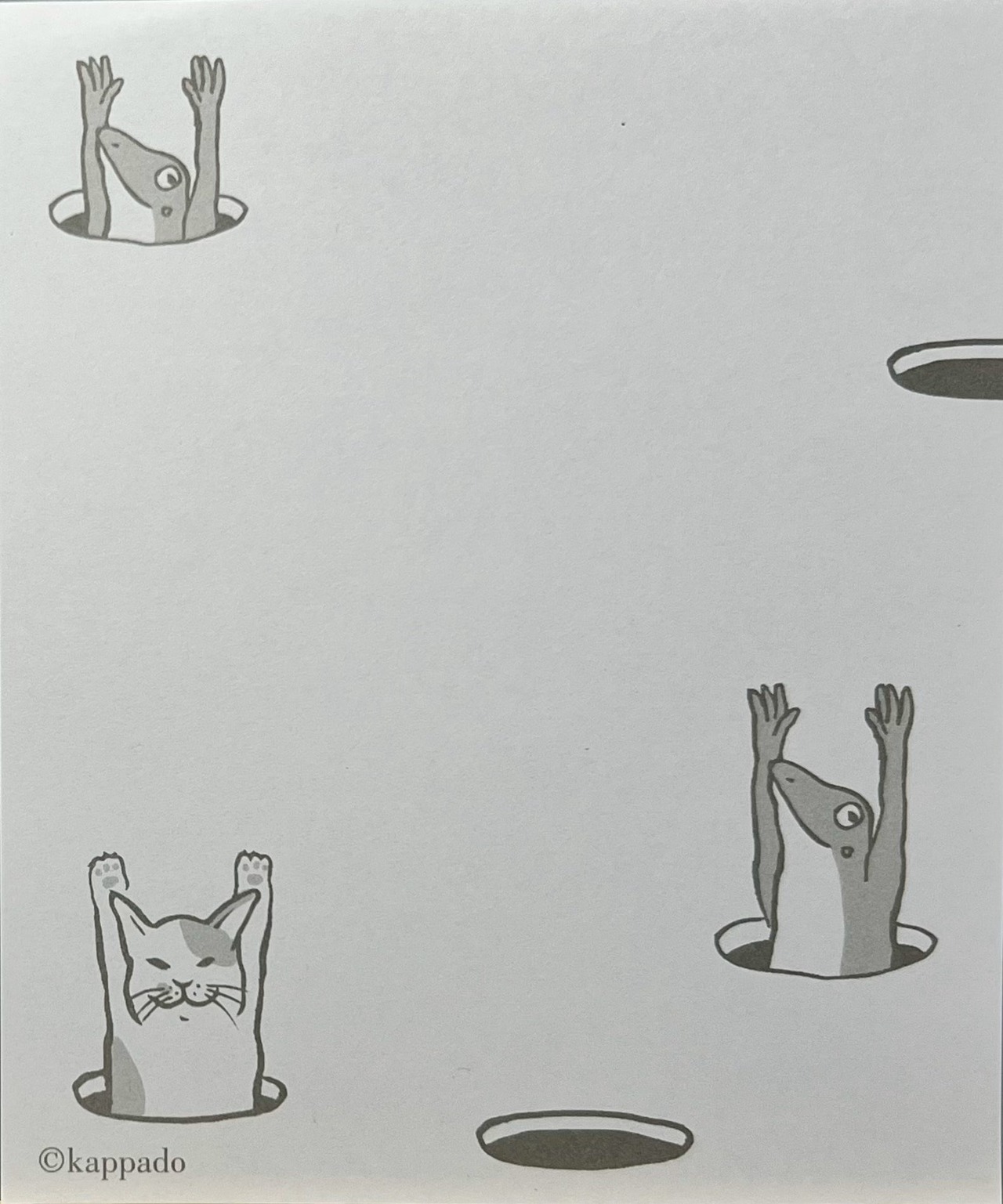 「河童堂」らしい、力の抜けたタッチとクスッと笑える世界観が魅力のほっこりメモパッドです。