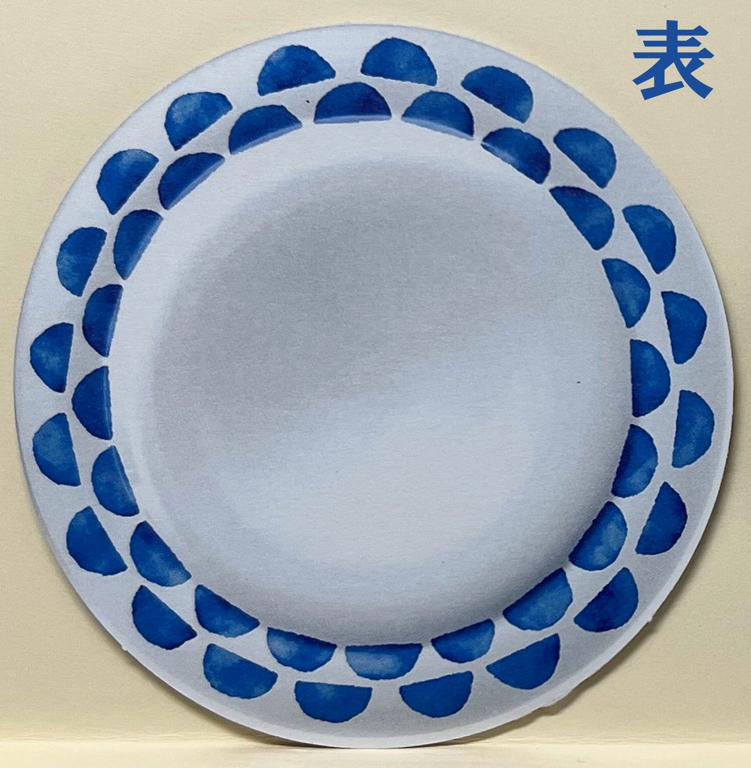落ち着いた青のうろこ模様をぐるりと囲み、まるで実際のお皿のような存在感です。