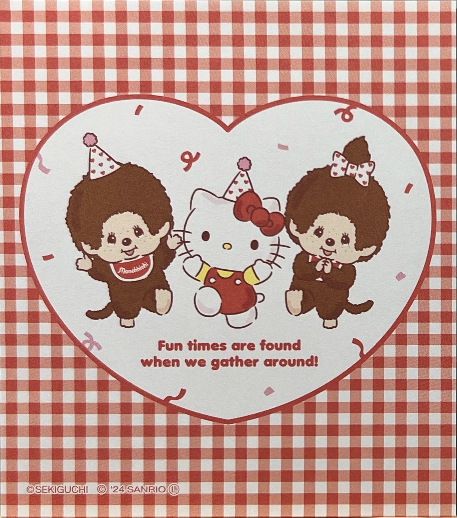 キティの赤とモンチッチのブラウンが可愛く映える、どこか懐かしさのある配色です。