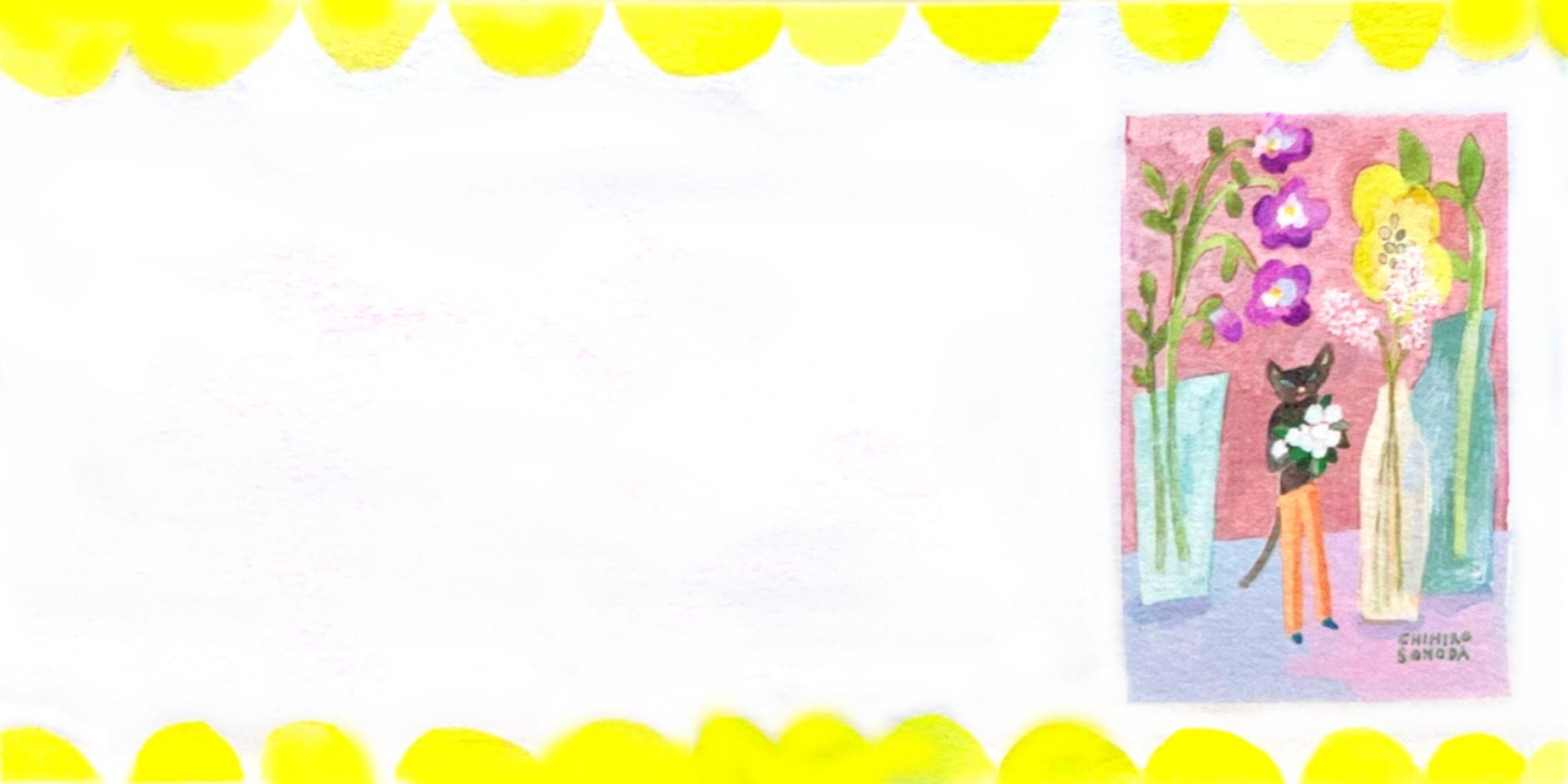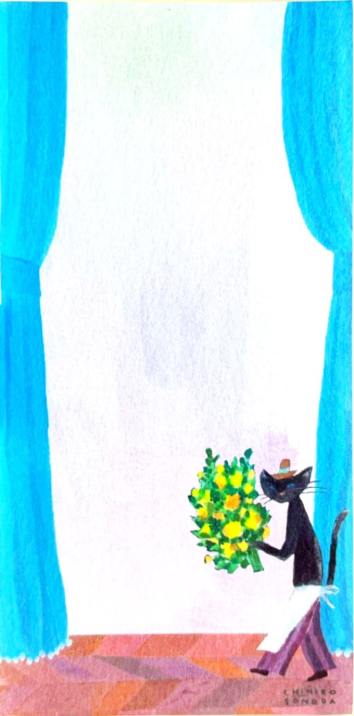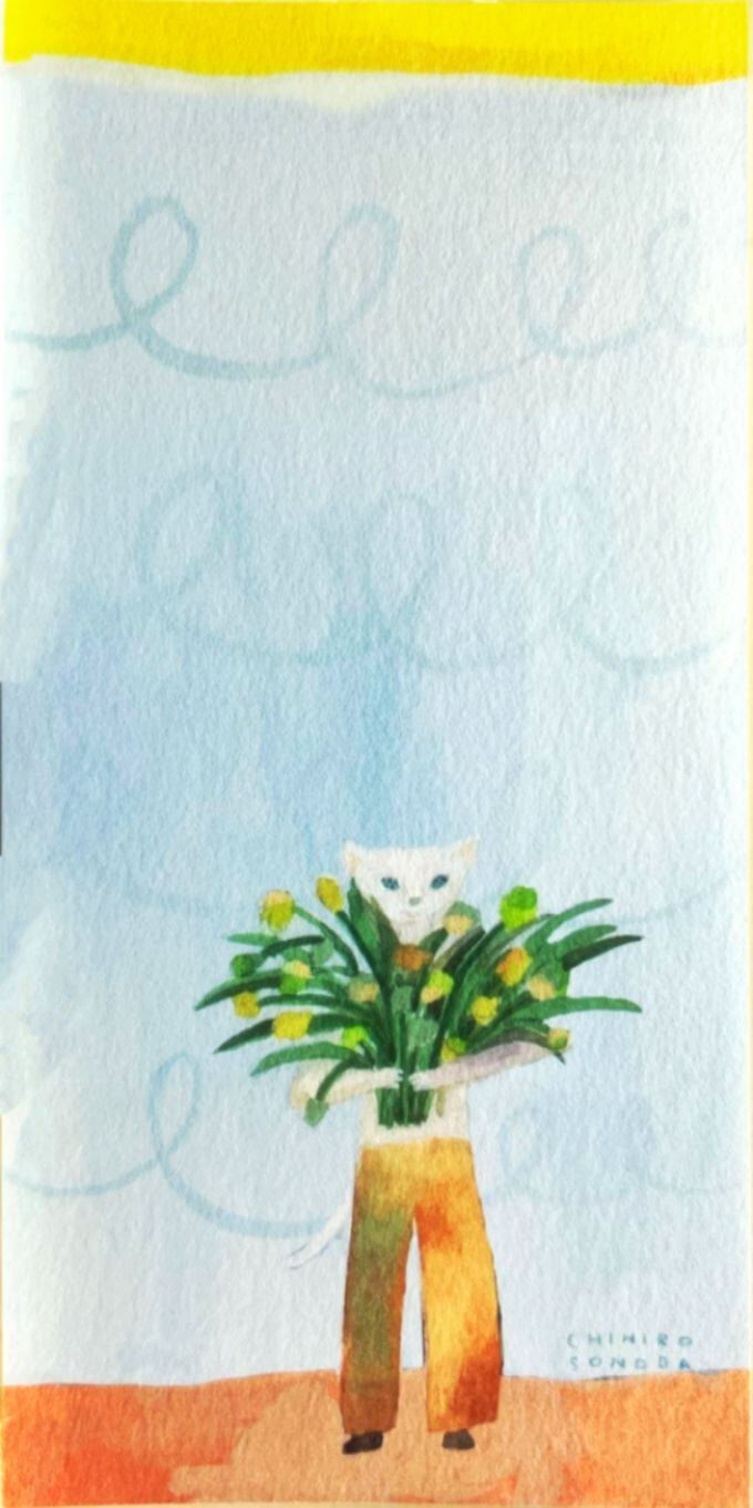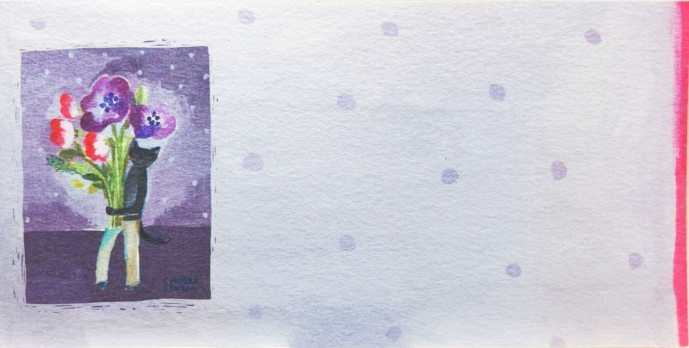 花束を抱えた黒猫たちが、そっと誰かに気持ちを届けるような世界が描かれた全4柄。