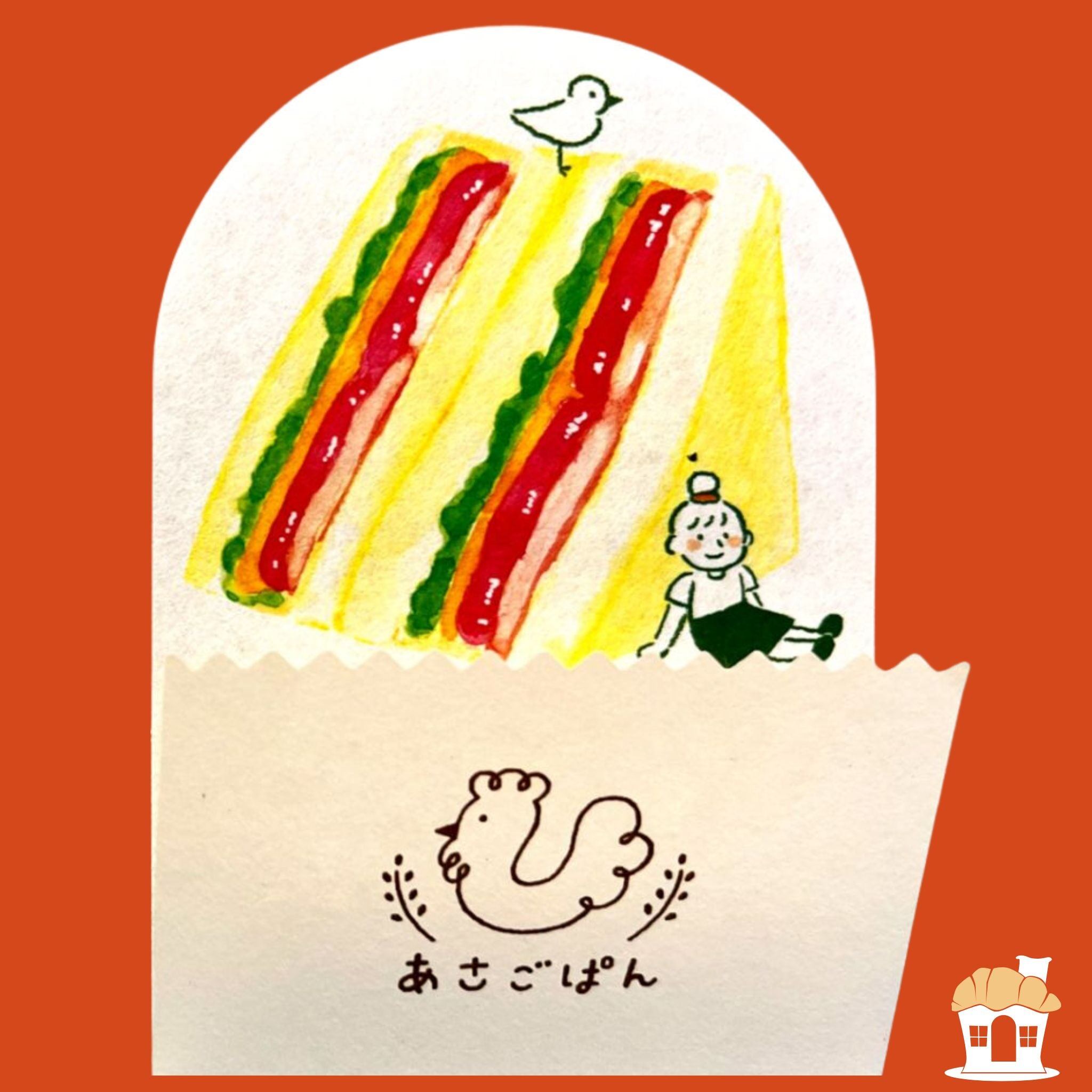 古川紙工「焼きたてパンタウン」シリーズの〈あさごぱん〉は、サンドイッチと朝ごはんをモチーフにした、遊び心あふれる型抜きミニレターセットです。