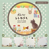 「ねころび レトロメモ おもち と あずき」は、昔懐かしい駄菓子屋を舞台に、看板猫のおもちとあずきが登場するレトロな雰囲気のメモパッドです。