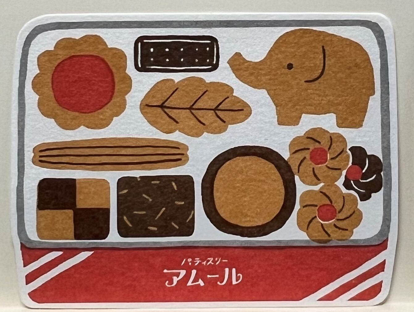 昭和レトロな雰囲気ただよう「パティスリーアムール」の世界観を再現した、クッキー缶モチーフのミニ便箋です。
